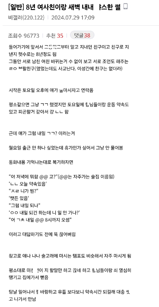 8년지기 여사친이랑 새벽 내내 ㅅㅅ한 이야기