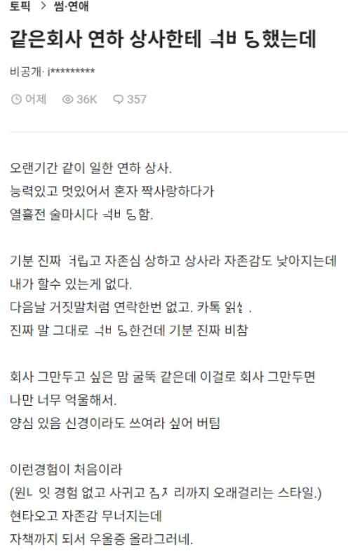 같은 회사 연하 상사한테 ㅁ버당했는데..