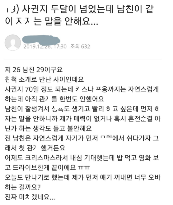 사귄지 두달이 넘었는데 남친이 ㅅㅅ하자고 안해서 발ㅈ난 여자