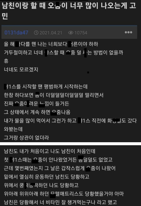 남친한테 ㅂㅈ에 ㅈㅈ ㅂ힐때 오ㅈ 때문에 고민인 여자