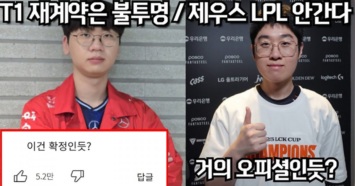 날이 갈수록 격변하는 스토브시장, T1 재계약이 불투명하고 제우스의 LPL 불발?