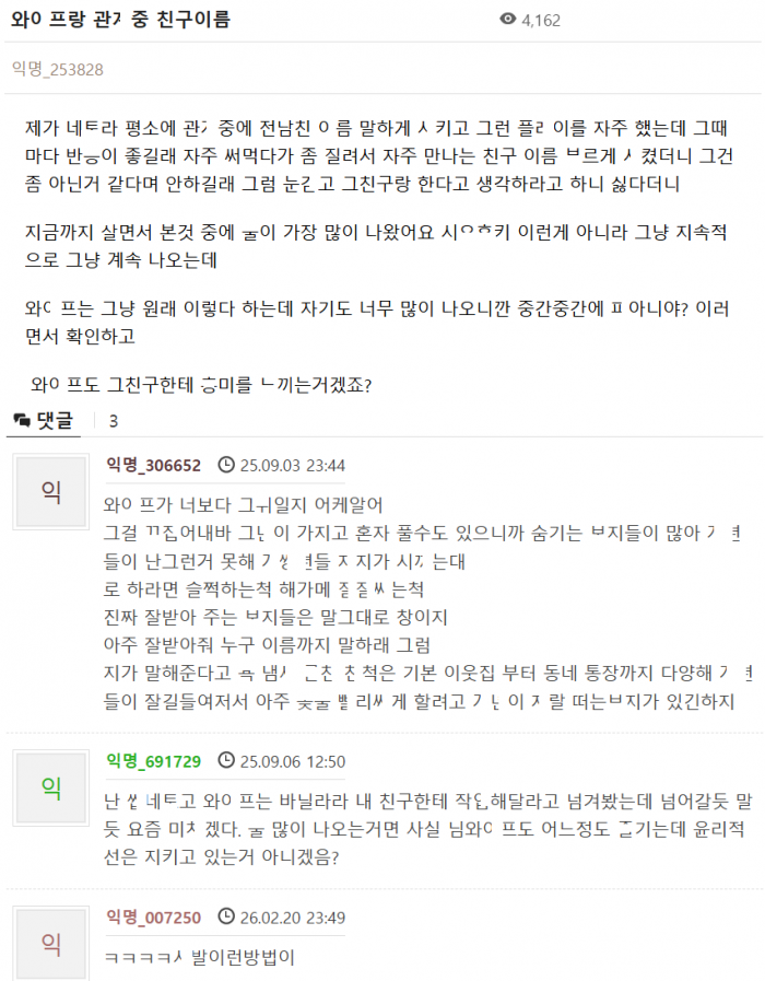 와잎이랑 ㅆㅈ중에 칭구 이름