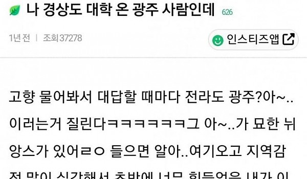 나 경상도 대학 온 광주 사람인데