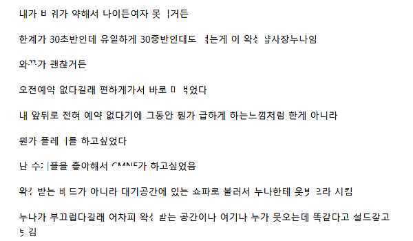 호ㅃ 손ㄴ으로 온 ㄹㅆ롱 ㅇ가ㅆ랑 ㄲㄸ친 웨ㅇ터