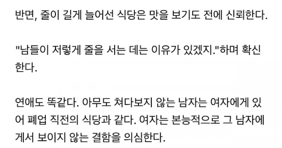 여자가 유부남이나 애인이 있는 남자에게 더욱 큰 매력을 느낀다는 살벌한 이유