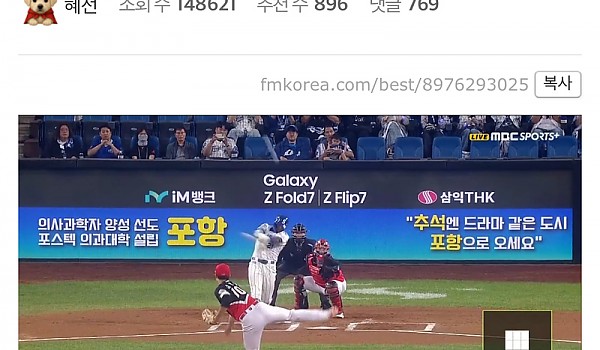 못본 삼성팬들은 꼭 봐야하는 디아즈의 50-150기록하는 선제쓰리런 홈런ㄷㄷ(+영상)