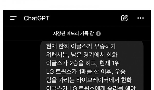 챗GPT가 예상하는 현시점 한화가 정규시즌1위 할 수있는 가능성