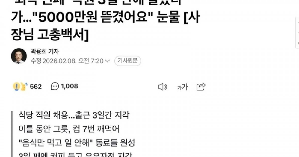 민폐 직원 3일만에 잘랏다가 5000만원 뜯긴 사장
