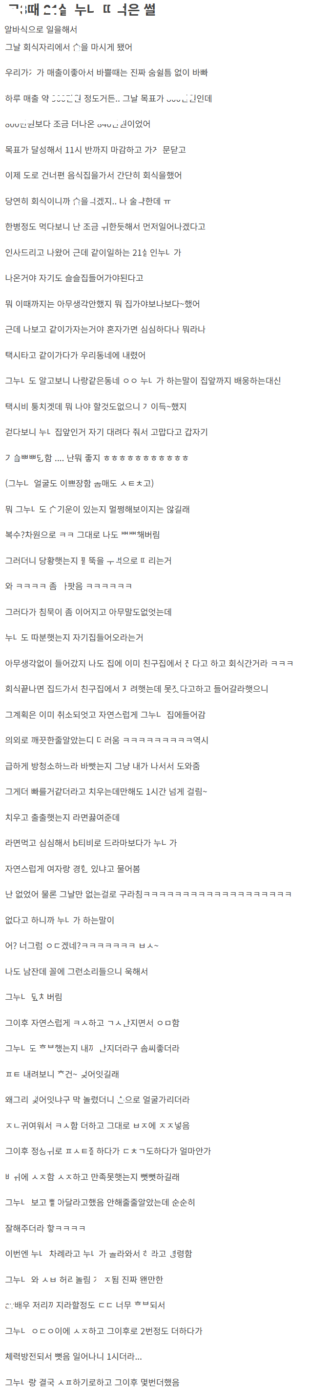 같이 일하던 눈나 집에 갓다가 잡ㅇ ㅁ힌 이야기