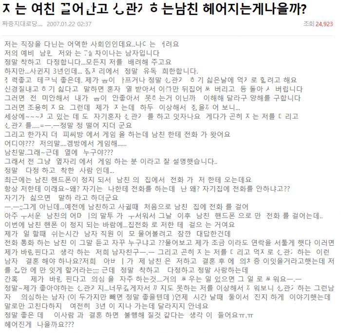 ㅈ는 여친 ㄲ어ㅇ고 ㅅㅅ하는 남친