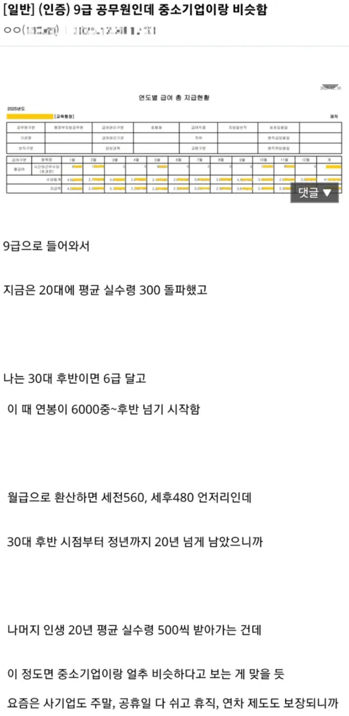 9급 공무원인데 중소기업이랑 비슷함