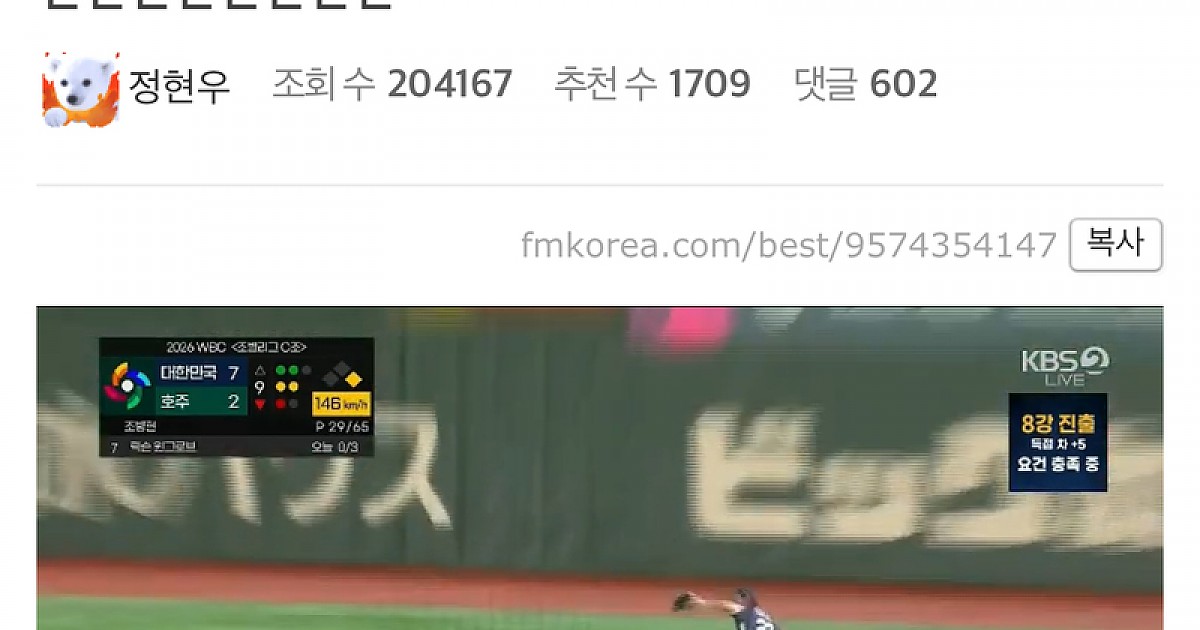 대한민국을 탈락 위기에서 살린 이정후의 탈메이저급 수비ㄷㄷ(+영상)