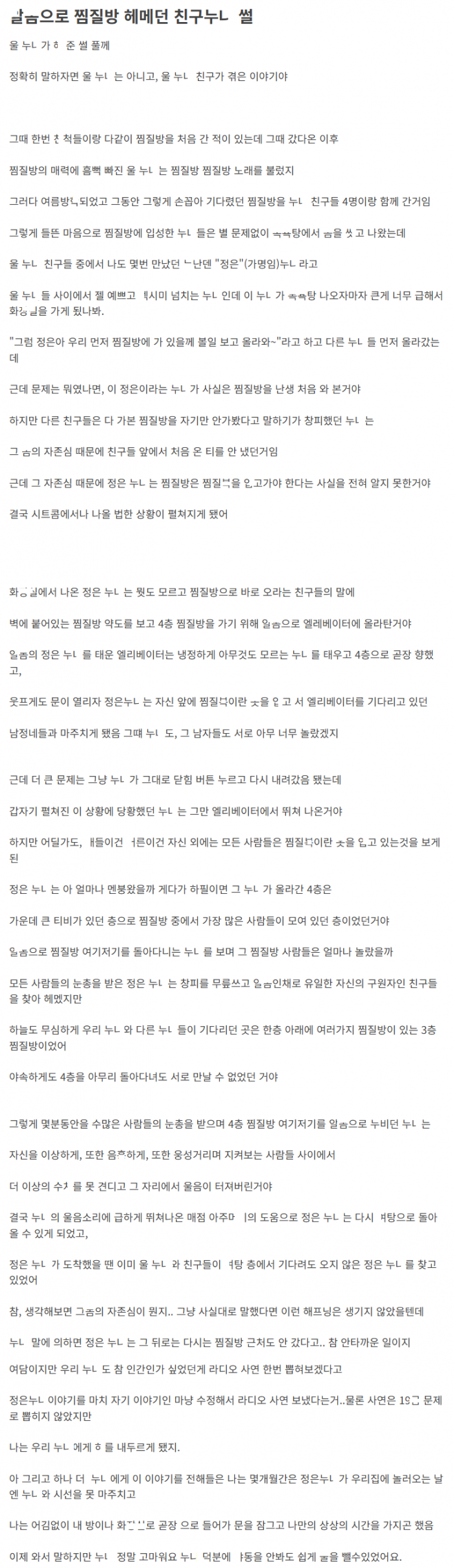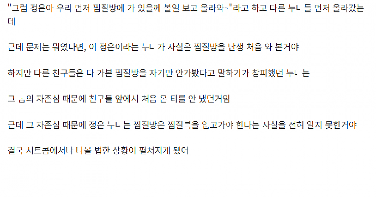 찜질방에서 ㄱㅅ 오픈한채로 알ㅁ으로 다닌 눈나 친구 이야기