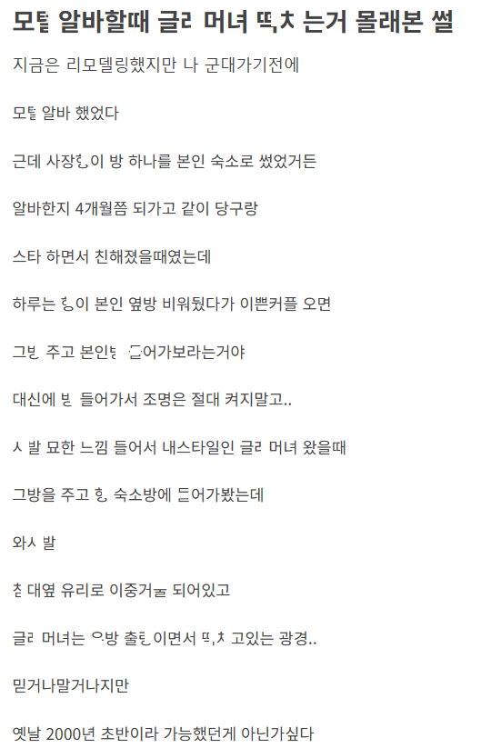 모ㅌ 알바할때 글ㄹ머녀 ㄱㅅ 출ㄹ이며 ㅂ히는거 몰ㄹ 본 이야기