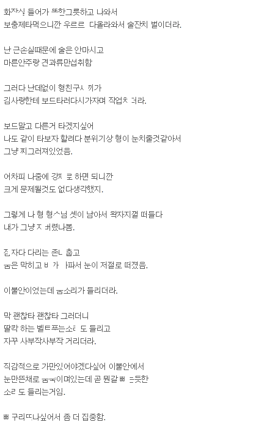 스키장 놀러갔다가 아는형이랑 형슈가 ㄸ치는거 몰ㄹ 훔ㅊ본 썰