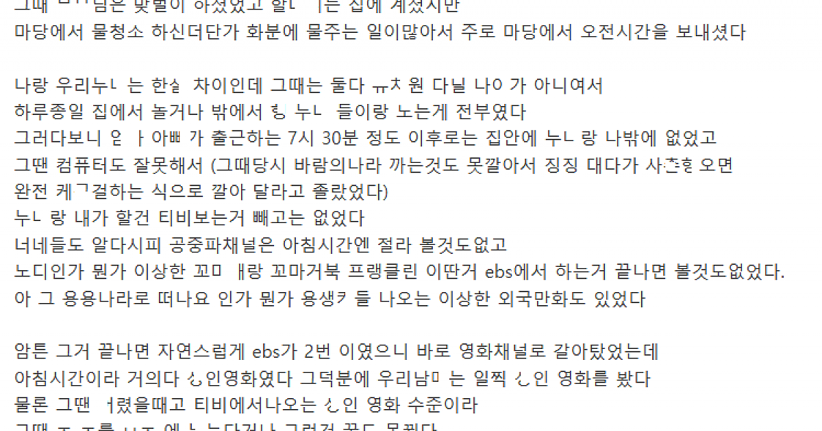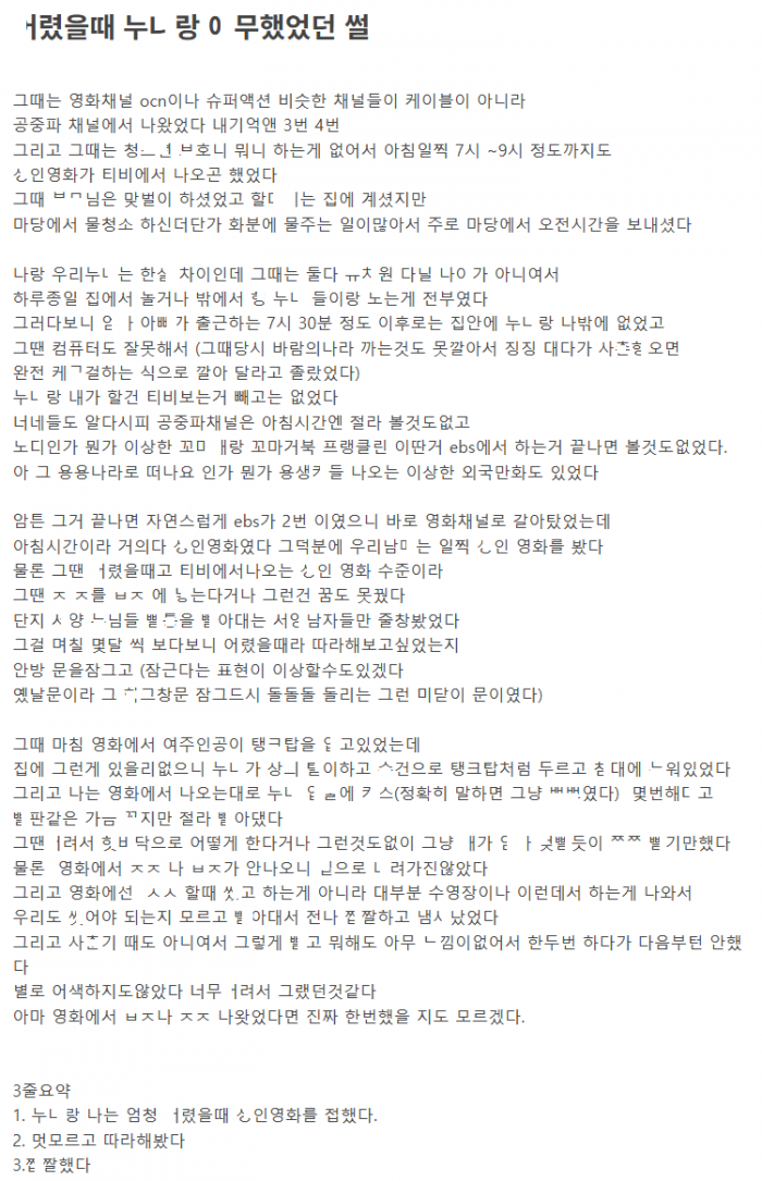 ㅇ한영화 보다가 ㄲ려서 눈나랑 폭풍ㅇ무한 이야기