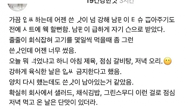 남ㅍ 정ㅇ으로 식단 파악 중인 유ㅂ녀
