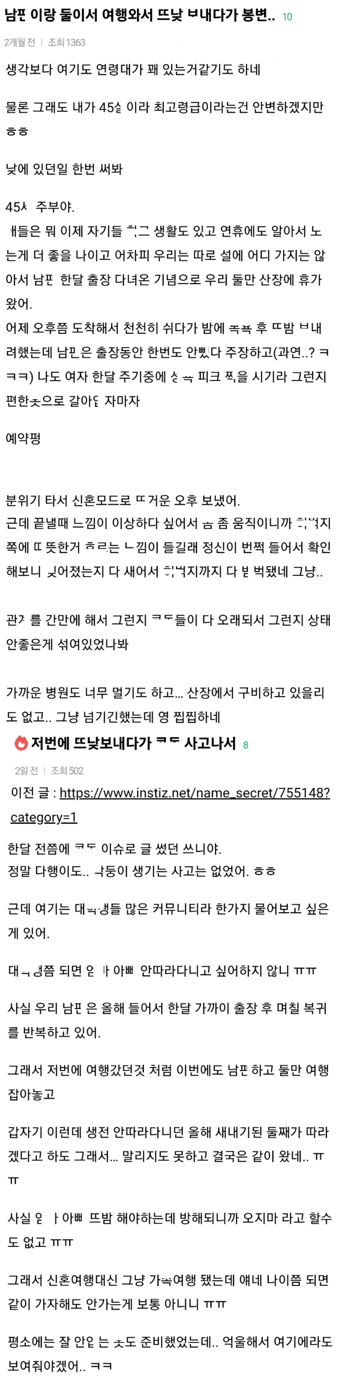 남ㅍ과 둘이 여행가서 뜨낮 보내다가 봉변 당한 사건