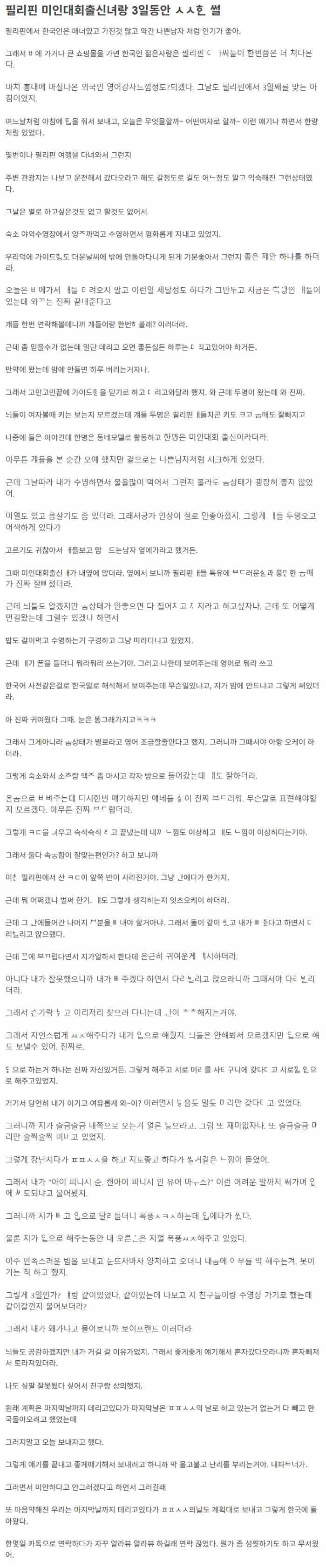 미인대회 출신 필리핀 츠자 ㅂㅈ 3일 내내 ㅎ벼판 이야기