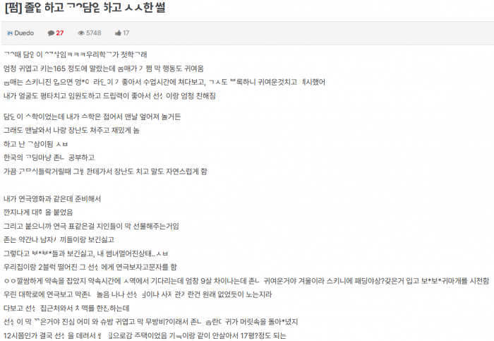 졸ㅇ하고 담ㅇ여선ㅅ님이랑 ㅅㅅ한 썰