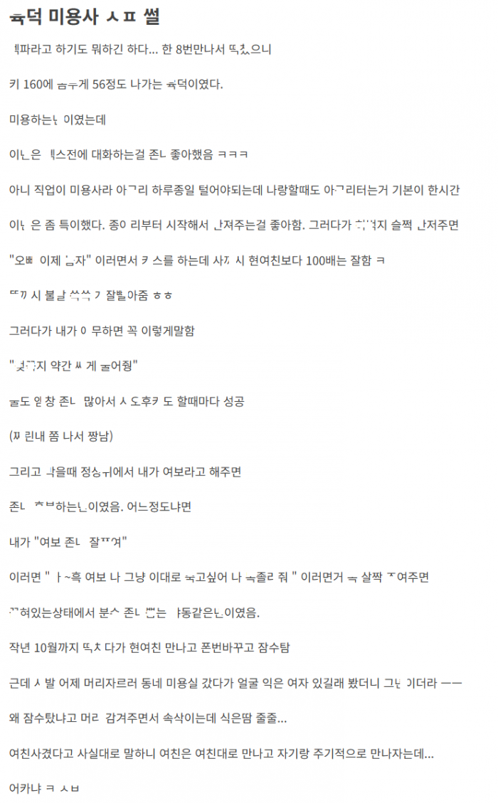 동네 ㅇ덕 미용사 ㅂ태녀 ㅅ파 이야기