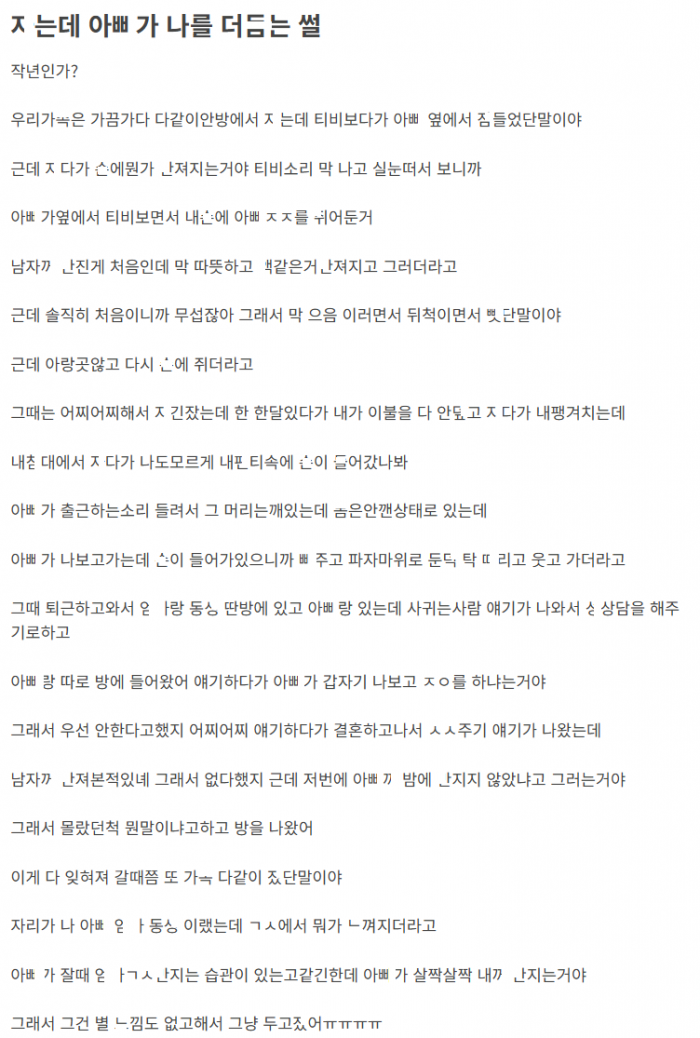 ㅈ고 있는 ㄸ의 손에 ㅇㅃ의 ㅈㅈ가 쥐어짐