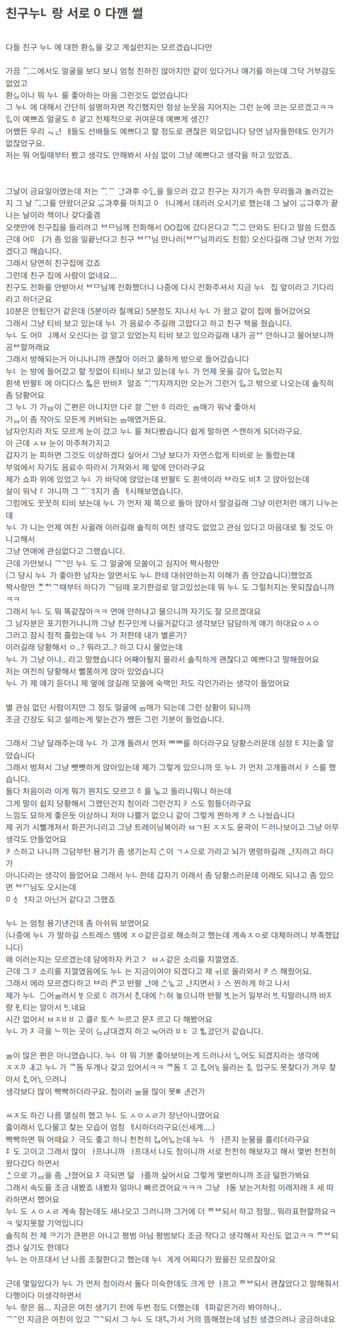 친구 누ㄴ한테 ㅇ다 ㄸ이고 서로 ㅇ다 깨준 이야기