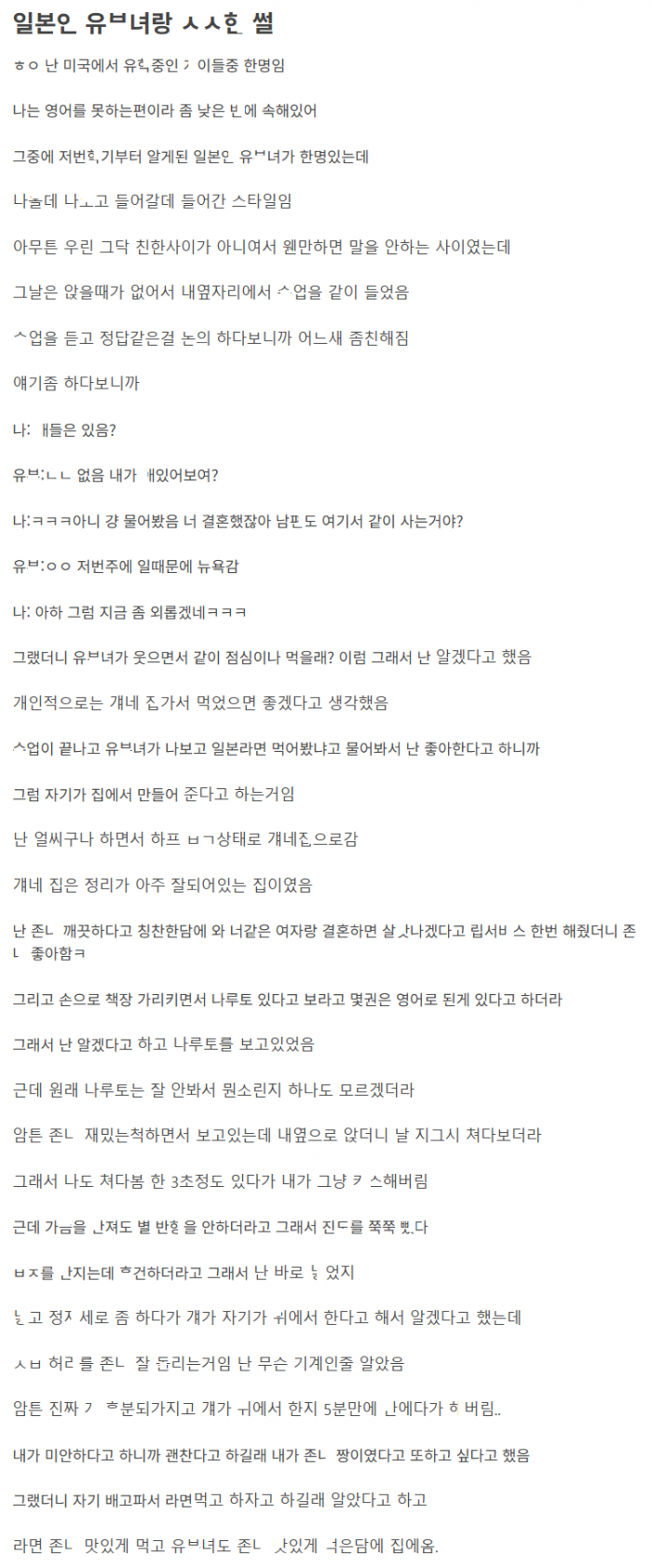미국에 유ㅎ 갔다가 본 일본 유ㅂ녀 집에 라면 먹으러 갔다가 생긴 일