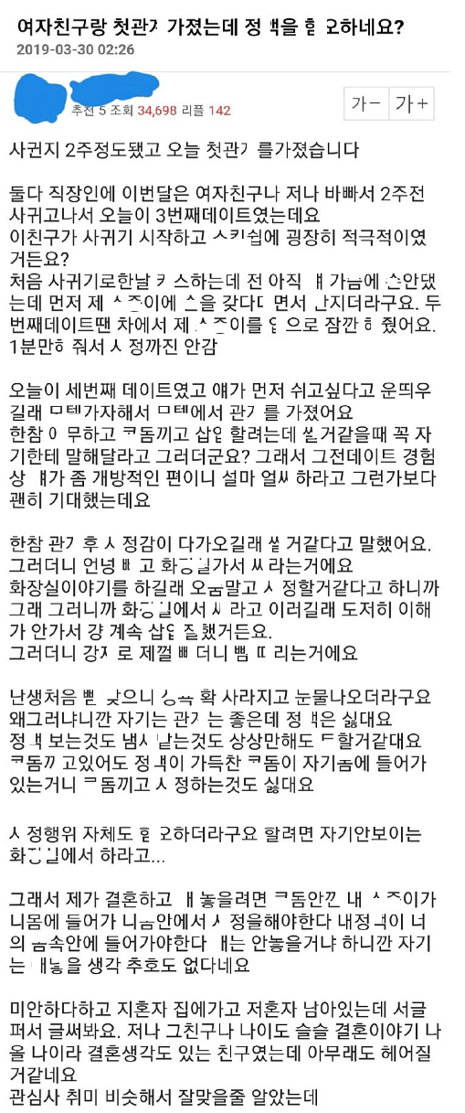 ㅅㅅ하는건 좋아하면서 ㅅ정은 다른데 가서 하라는 여친