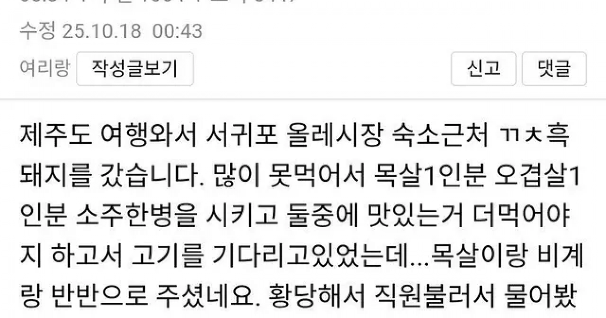 제주도 고기집 비계 이슈