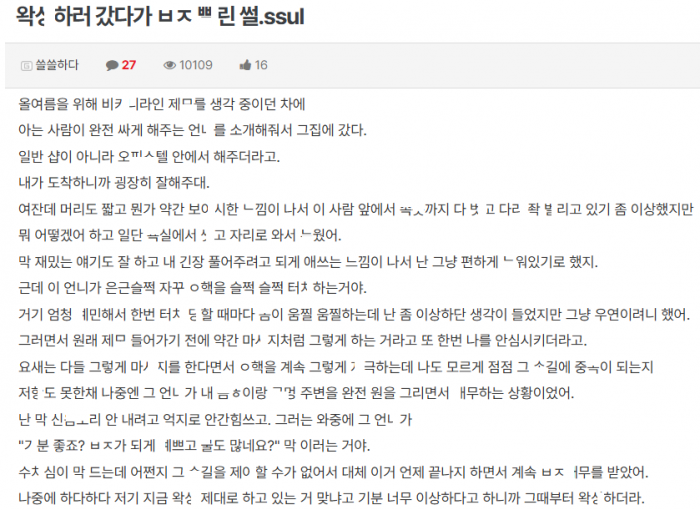 왁ㅅ 하러 갔다가 ㅂㅈ가 너무 이쁘다고 ㅂㅈ ㅃ린 여자