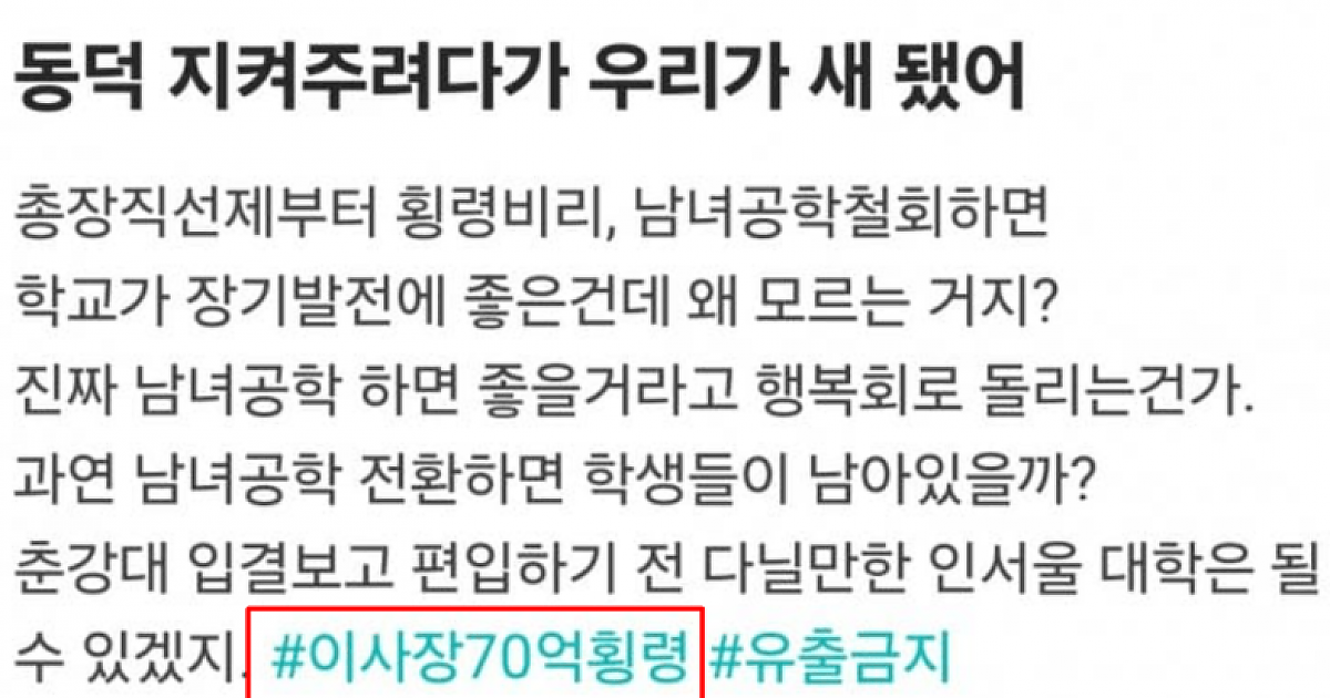 증거는 없음, 그냥 느낌이 그래서 70억 횡령ㅋㅋㅋ