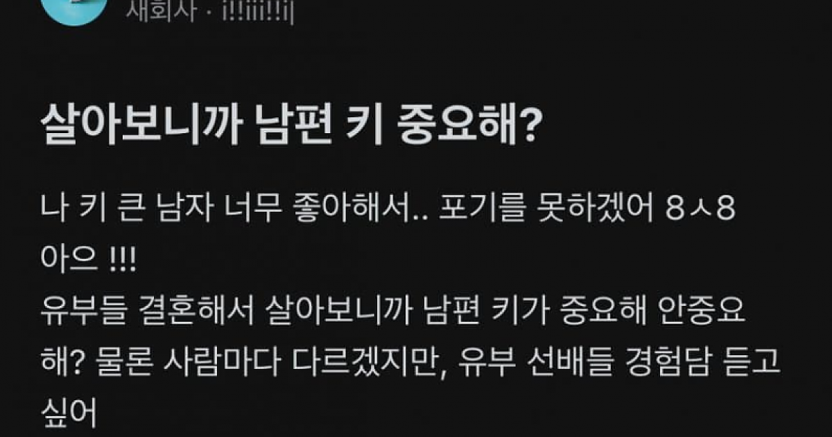블라인드에서 난리난 결혼하면 남편 키 큰게 중요할까?.jpg