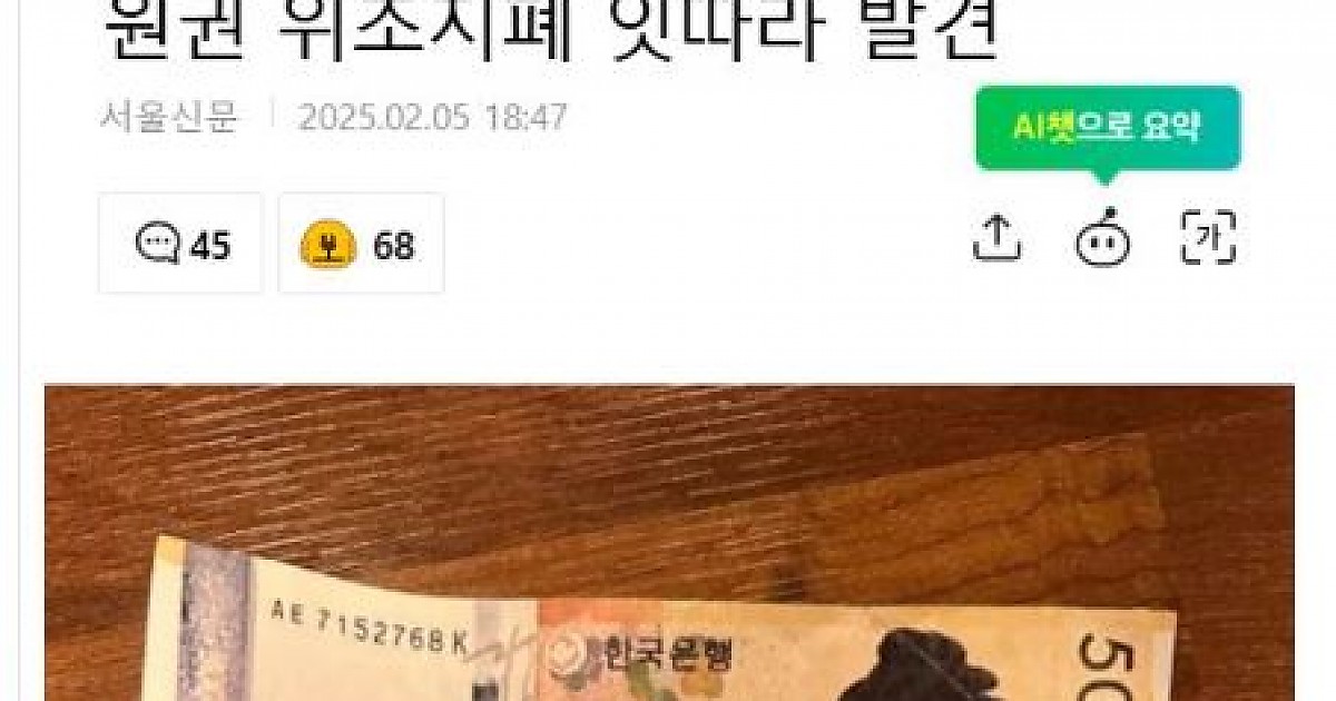 대구서 5만 원권 위조지폐 잇따라 발견ㄷㄷㄷ.jpg
