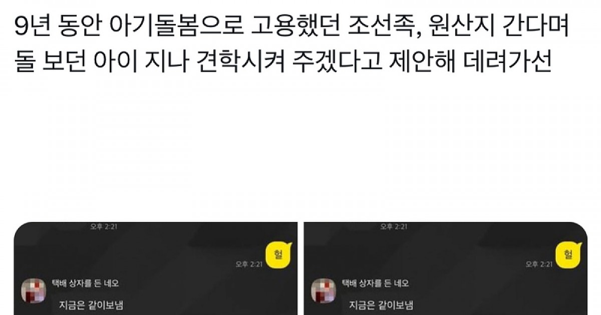 9년간 조ㅅ족을 보모로 뒀다가 일어난 일