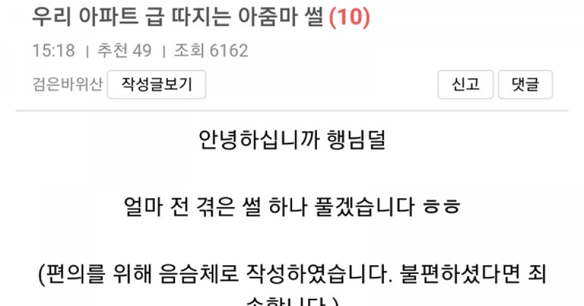 아파트 급 따지던 아줌마의 최후