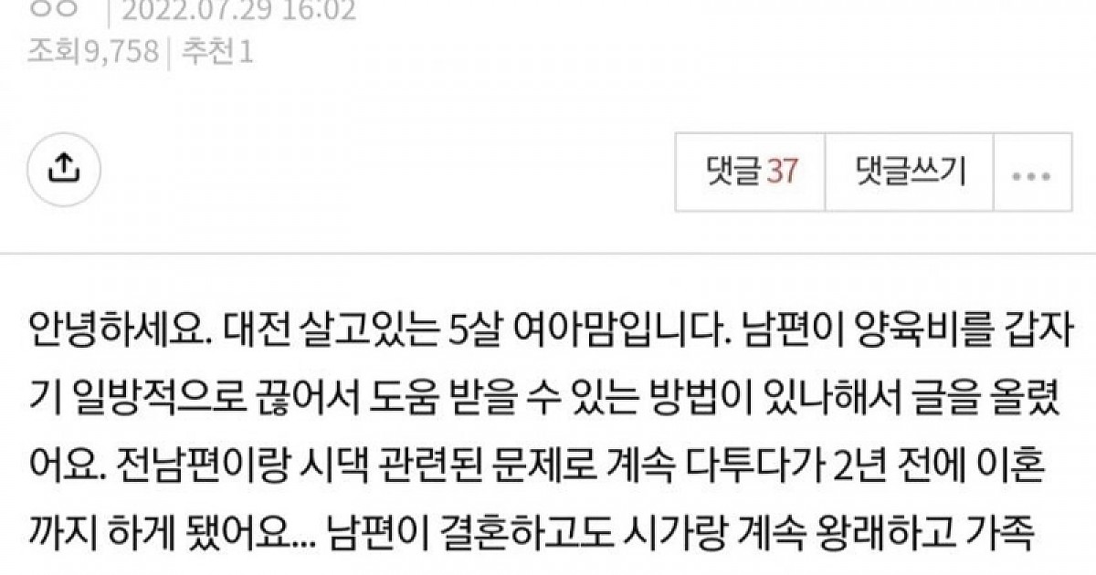 양육비 안보내는 전남편 어떡하죠
