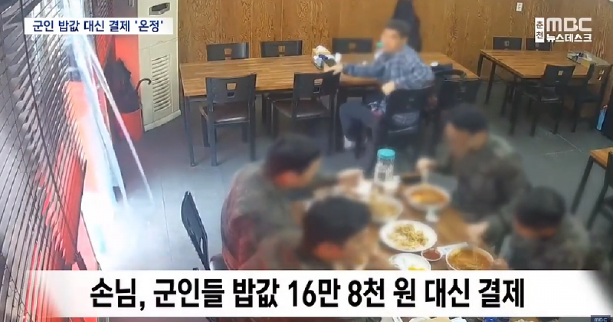 군인 14명 밥값 16만 8,000원을 결제하고 사라진 남성