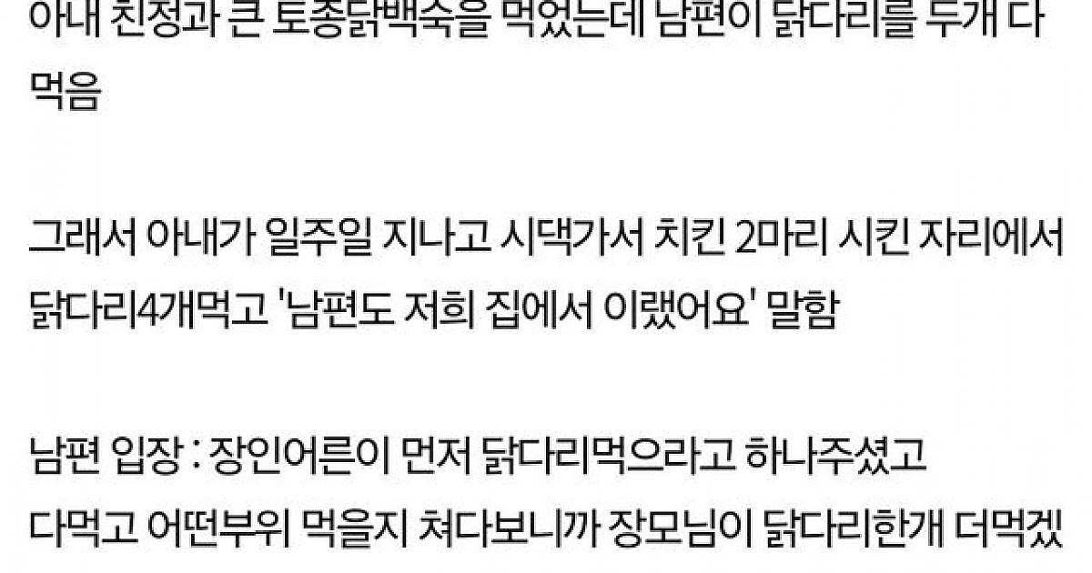 시부모님 앞에서 닭다리 다먹은 와이프
