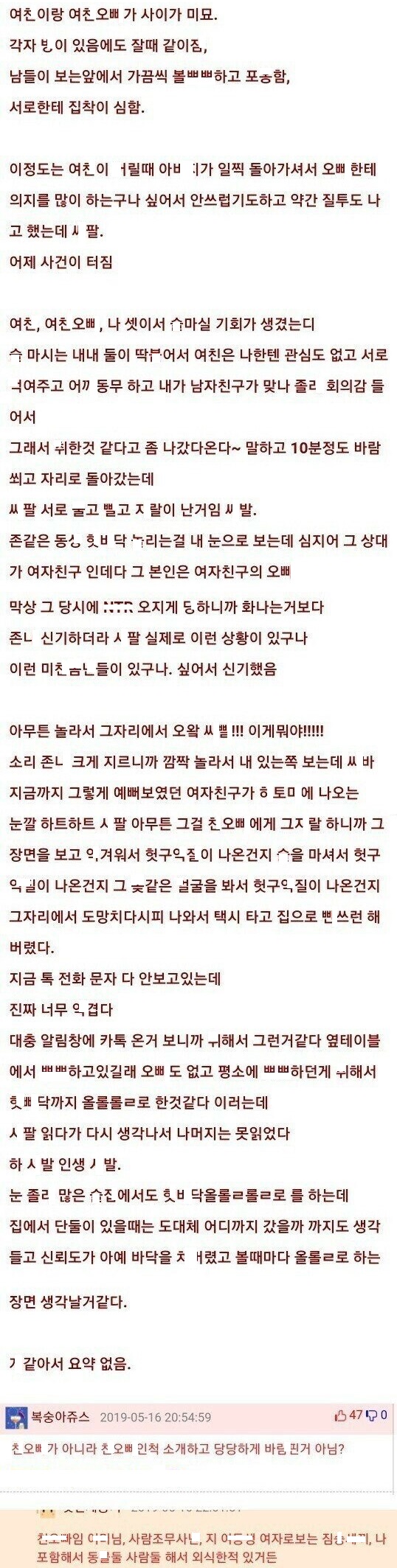 여ㅊ이 자기 ㅊ오ㅃ랑 ㅅㅅ하는거 목격한 썰