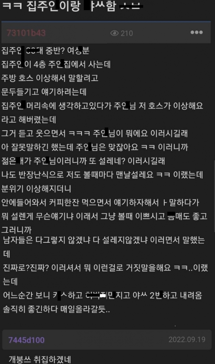 주방 호스 이상하다고 말했다가 집주인이랑 ㅅㅅ함