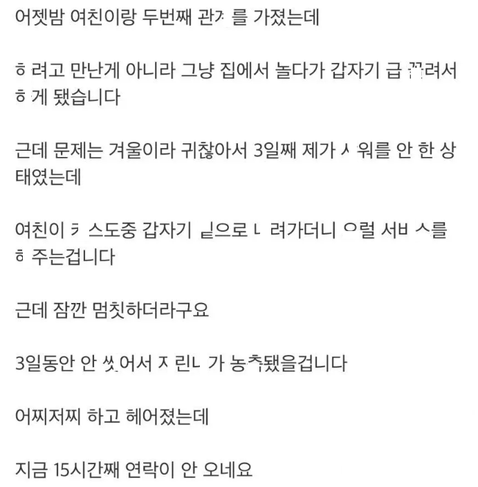 여친과 두번째 ㅅㅅ하고난 뒤부터 연락이 안되요