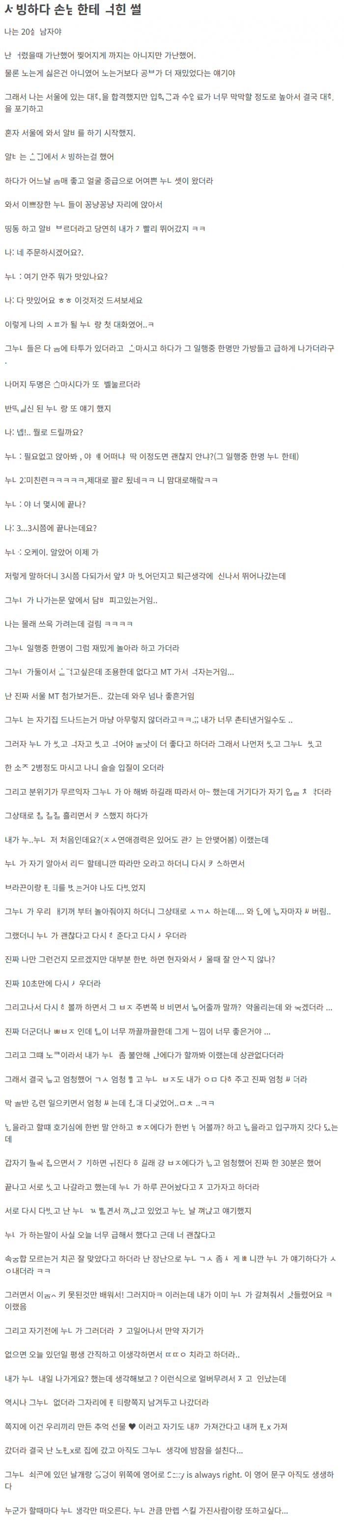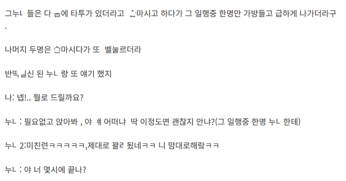 노ㅋ으로 ㅂ아달라던 알ㅂ 서ㅂ 하다가 본 걸ㄹ변ㅌ 눈나 손ㄴ