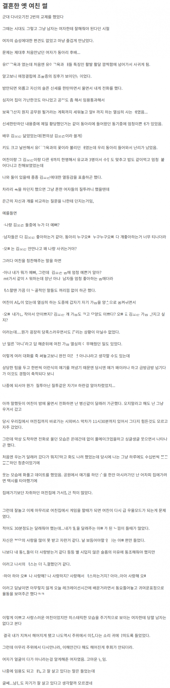 현재는 결혼한 가ㅅ A클라스 옛 여친 썰