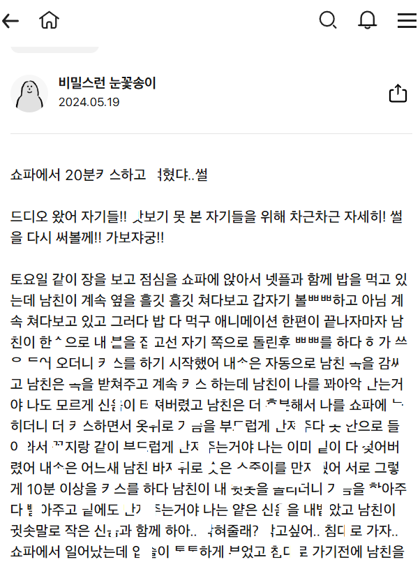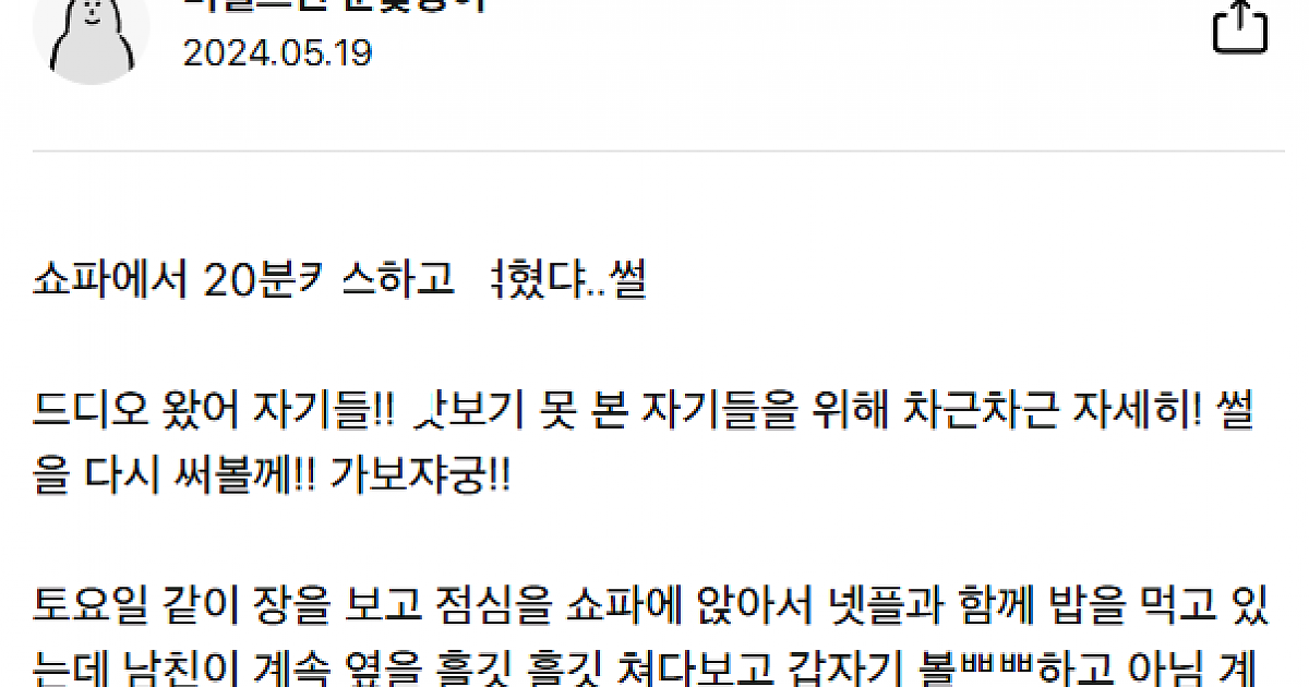 쇼파서 남친이랑 20분 ㅋ스하고 ㅁ힌 썰