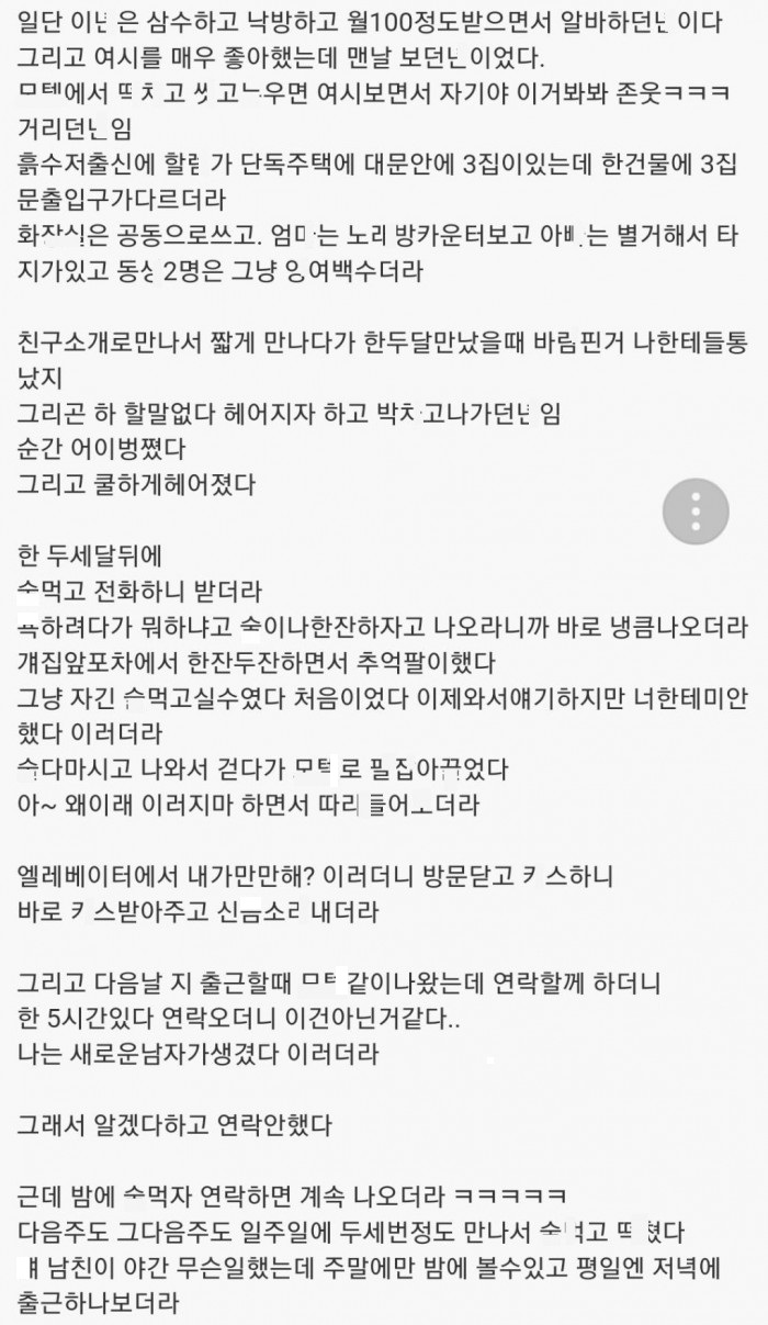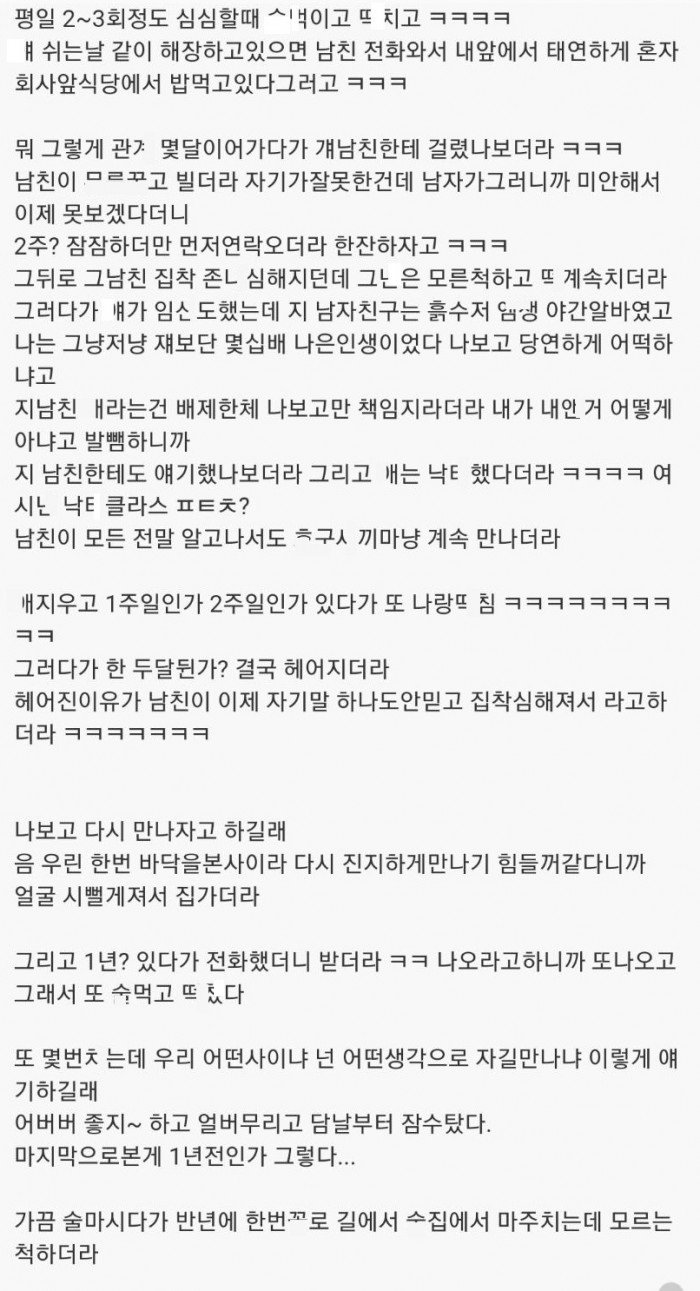 캐ㅆ걸ㄹ였던 전여친과 헤어지고도 계속 ㄸㅁ은 썰