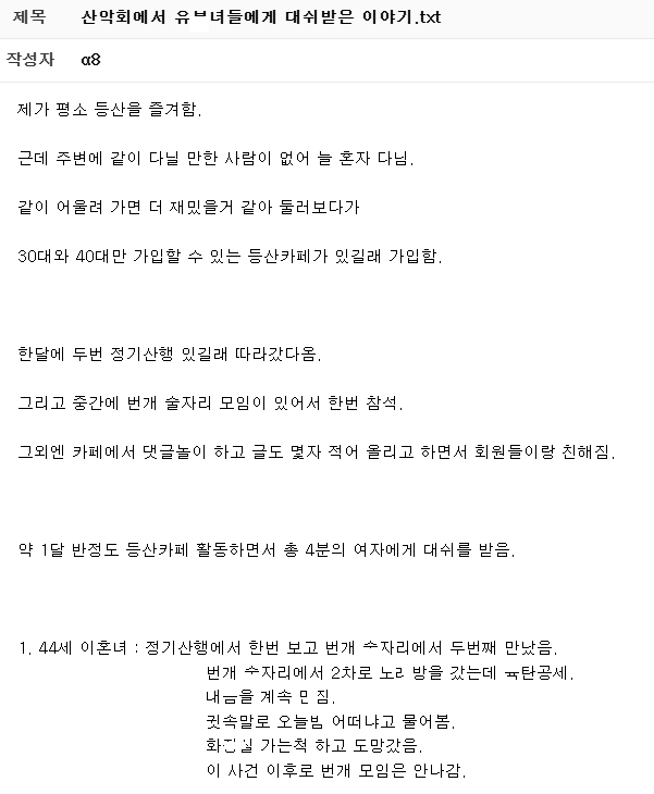 산악회에서 여러 유ㅂ녀들에게 대쉬 받은 남자 이야기 결말