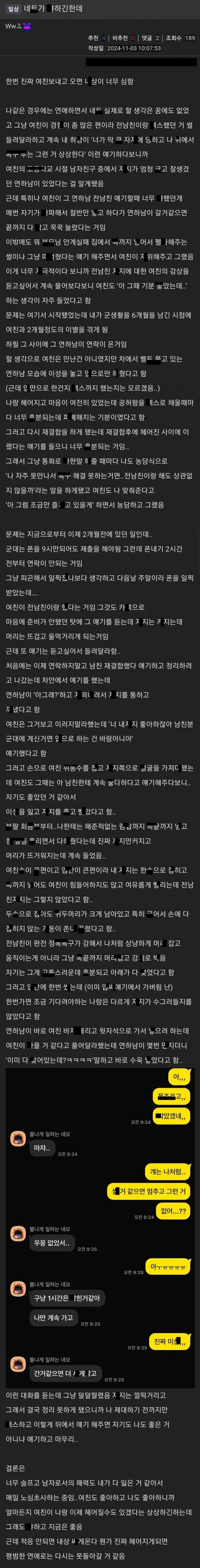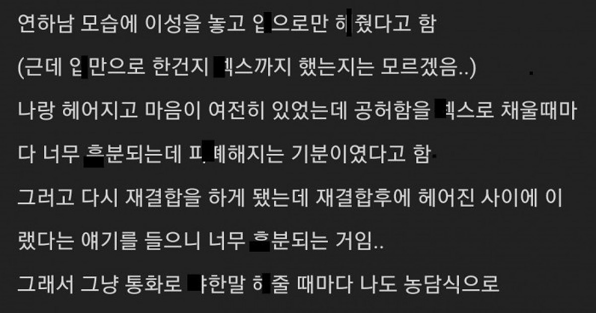 여친이 전남친과 ㅅㅅ하게해주고 그 ㅅㅅ썰 듣고 ㅎ분된다는 남자
