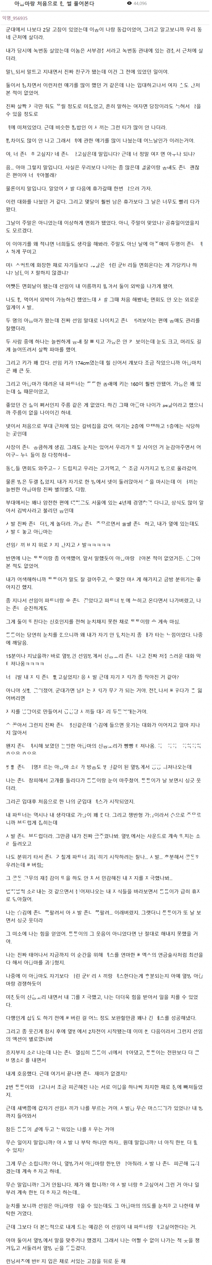 군대 선임이랑 외박 나와서 아ㅈㅁ들이랑 처음으로 ㅅㅅ한 사건